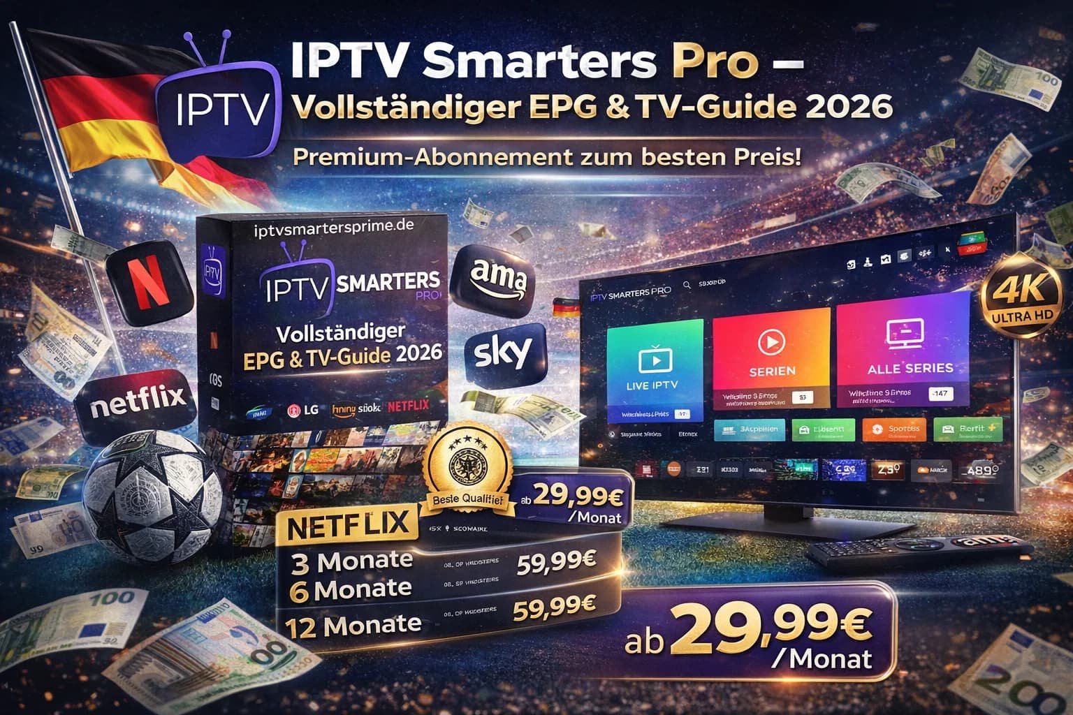 IPTV Smarters Pro – Vollständiger EPG & TV-Guide 2026 definiert modernes Fernsehen völlig neu. Während viele IPTV-Dienste sich ausschließlich auf Inhalte konzentrieren, geht IPTV Smarters Pro einen entscheidenden Schritt weiter und kombiniert riesige Senderauswahl mit einem vollständig integrierten elektronischen Programmführer. Für Nutzer bedeutet das nicht nur Zugang zu tausenden Kanälen, sondern auch volle Kontrolle, Übersicht und Planungssicherheit beim Fernsehen.